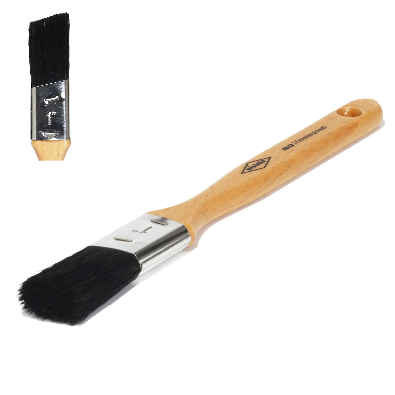 Der Fensterpinsel erleichtert das Streichen von Fenstern oder schmalen Profilen. Durch den Schrägschnitt ist eine präzise Linienführung möglich. Er ist vor allem dafür geeignet Lasuren zu verarbeiten. Der Fensterpinsel hat schwarze Chinaborsten.